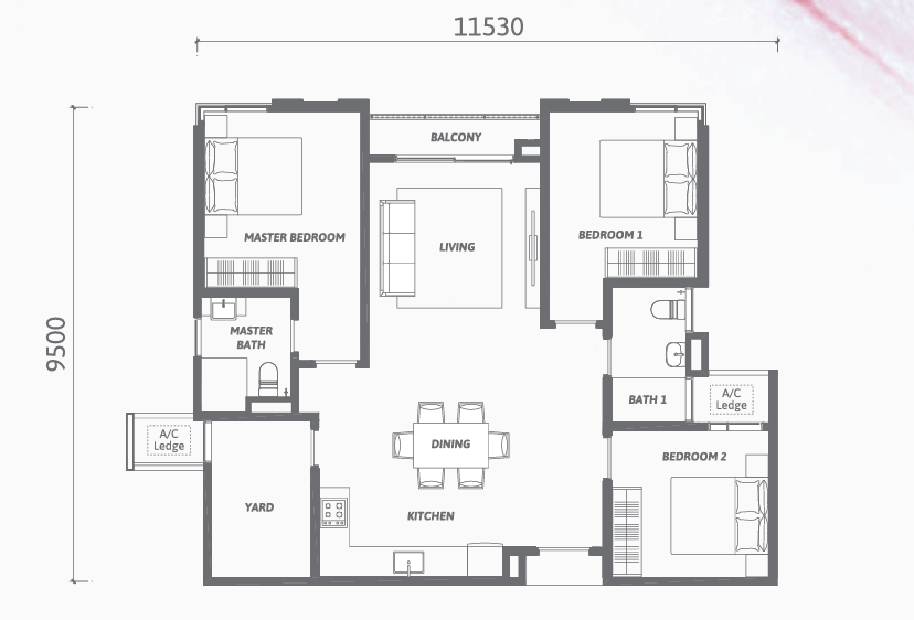 A well-balanced layout with an additional flexible room that can be used as a study, home office, or guest room. Suitable for growing families who need extra functional space without compromising comfort.